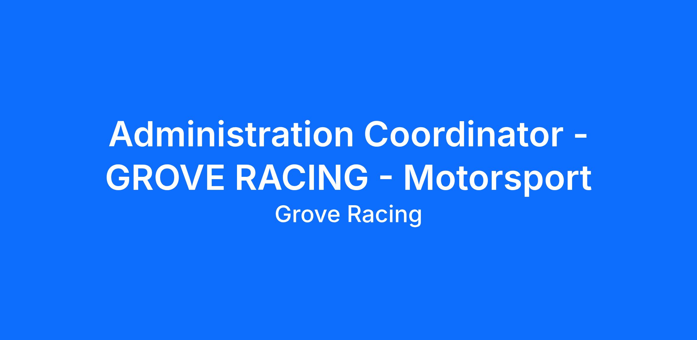 We are seeking a highly organised and proactive Administration Coordinator to support the day-to-day operations of the race team.