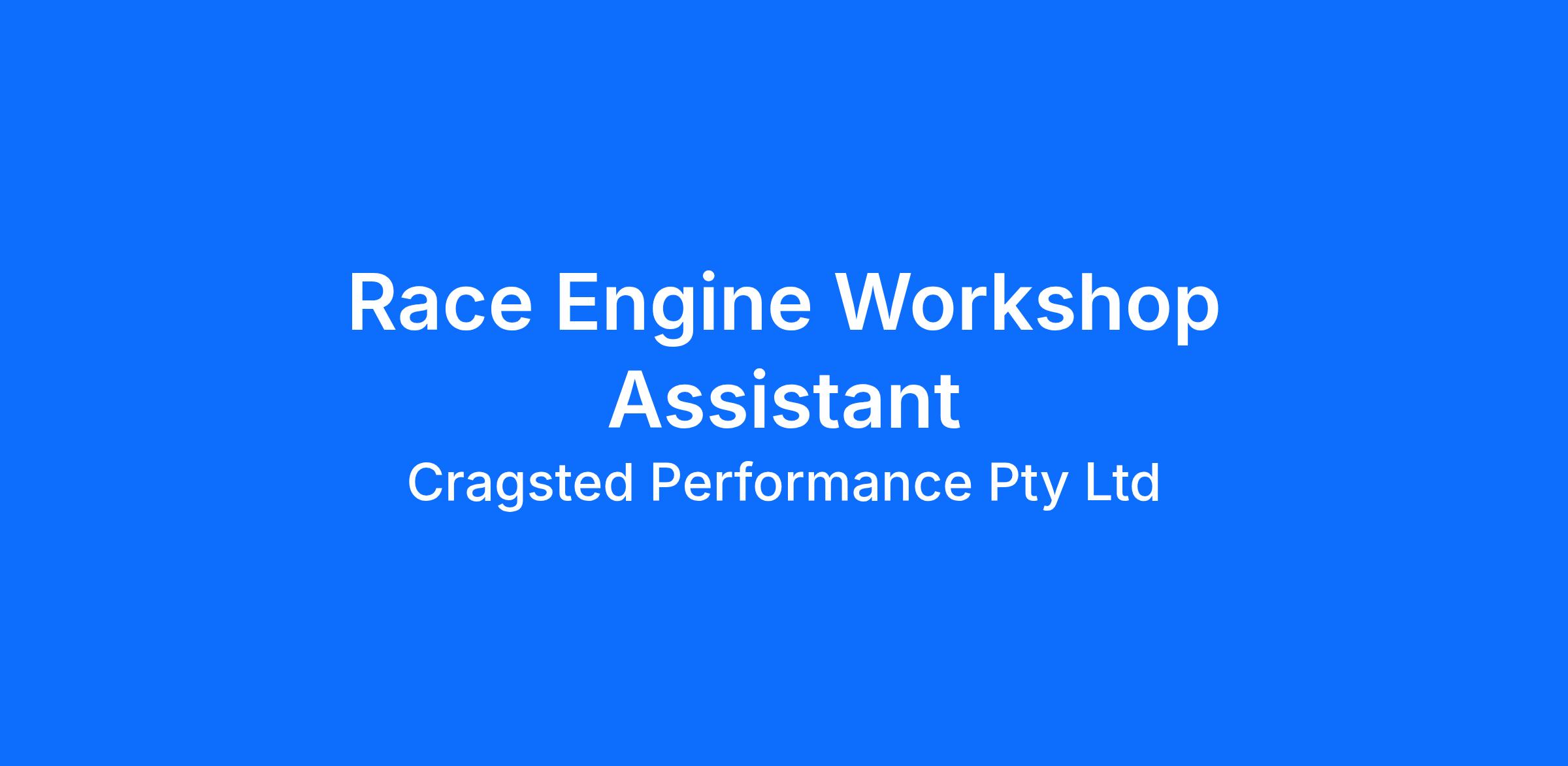 Cragsted Race Engines is offering an exciting opportunity for a Race Engine Workshop Assistant to become part of a dynamic and fast-paced workshop environment. This role is ideal for someone who thrives on variety, takes initiative, and enjoys being hands-on with high-performance race engines.